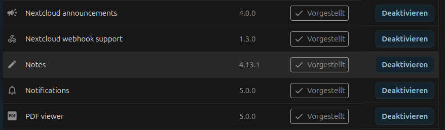 Ausgangspunkt ist ein installiertes und betriebsbereites Nextcloud. Als Administrator meldet meldet man sich dort an, um im “Apps” Bereich die Erweiterung “Notes” zu suchen. Standardmäßig ist die Notes-Erweiterung nicht aktiviert. Dies ist als Administrator per Mausklick schnell erledigt.